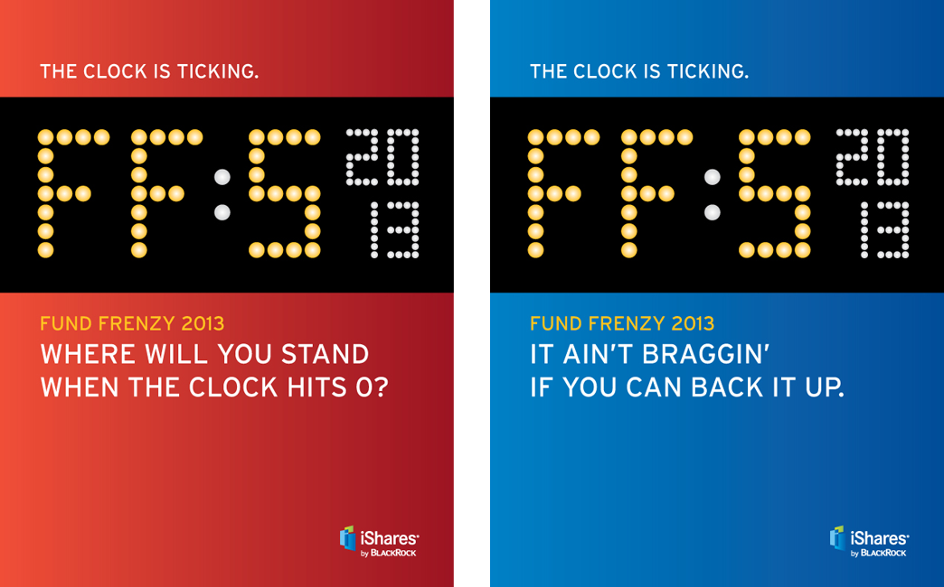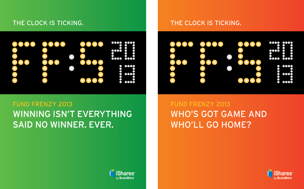Poster campaign for annual Fund Frenzy® charity competition. In true March Madness style, participants pick ETFs in a bracket format that they think will outperform over a four week period.