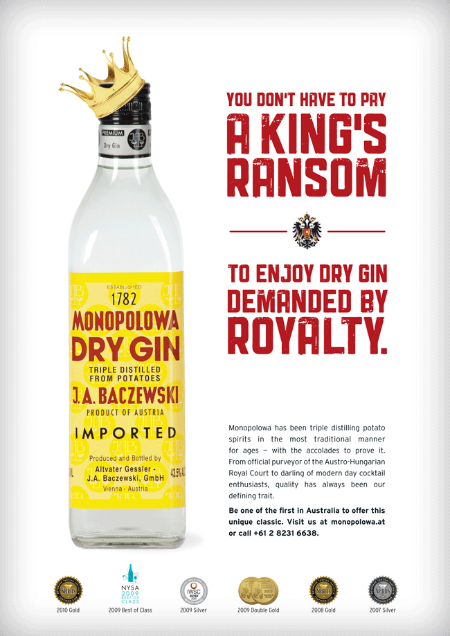 At its price point, it is the best Vodka you can buy. Featured on Ads of the World.com. King’s Ransom