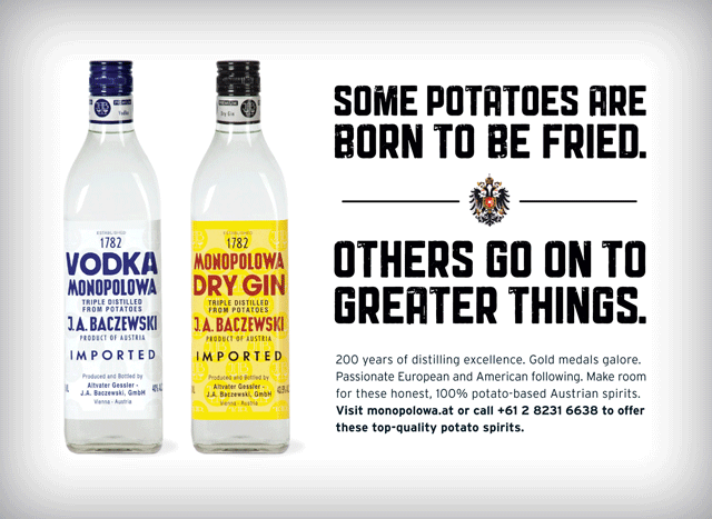 For the purists, potato vodkas are the only vodkas. Featured on Ads of the World.com. Born To Be Fried